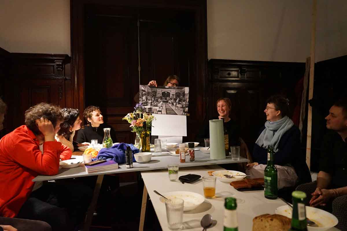 Küchen können Orte des Zusammenkommens sein und das Kochen ein Anlass zum Austausch. In der Küche wird unsere Lebensweise konkret und sinnlich erfahrbar – was essen wir, für wen bereiten wir Essen zu und mit wem teilen wir unsere Gerichte? Das Zubereiten von Essen wird selten als repräsentative, öffentliche Tätigkeit praktiziert, die als Teil eines Beisammenseins empfunden wird, sondern eher in Vorbereitung oder parallel dazu unsichtbar.