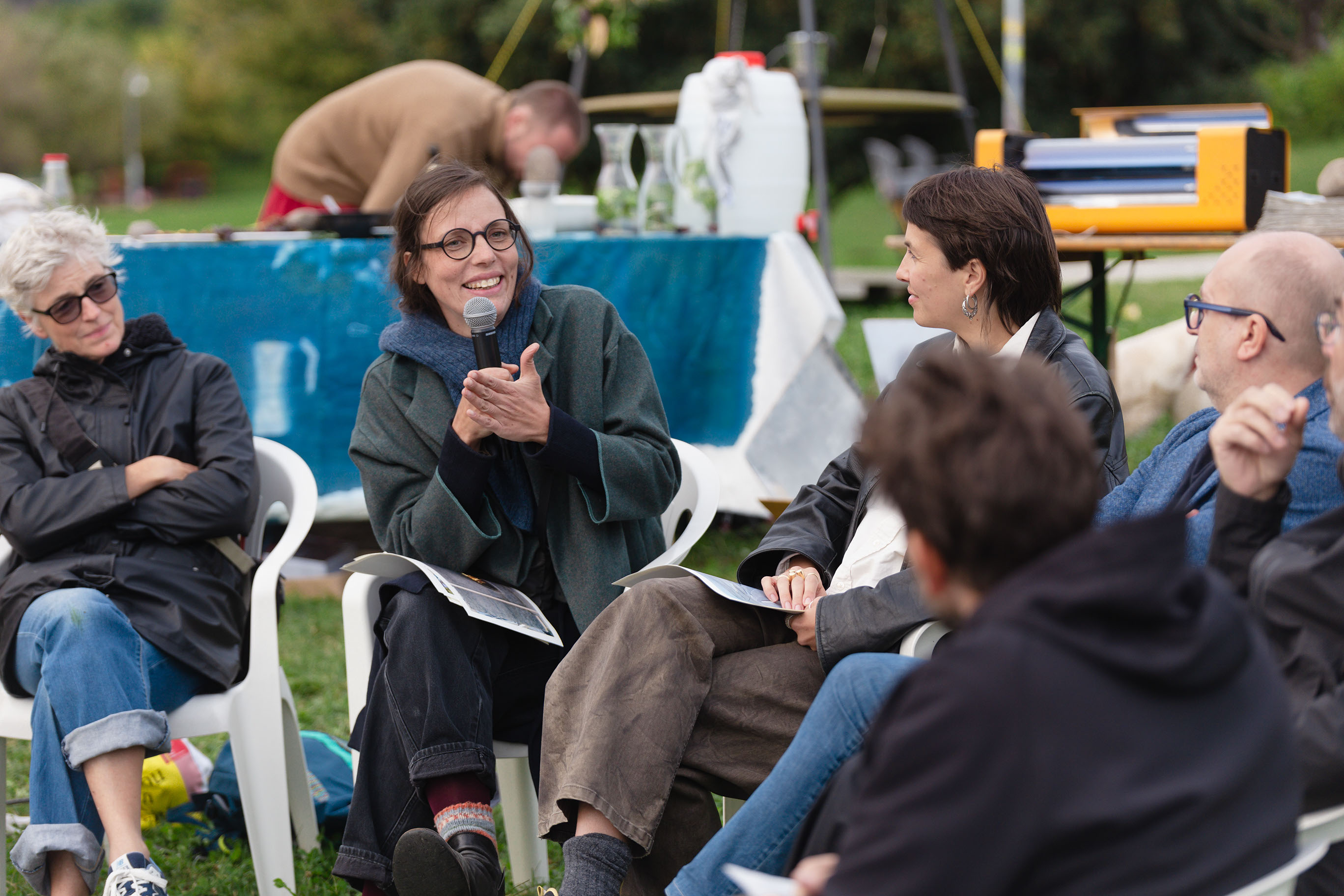 Sie ist ORT DES LERNENS. Es werden ExpertInnen eingeladen, ihr Wissen zu teilen. Aber ebenso wichtig ist der Austausch von Alltagswissen, Ortskundigkeit und Praxiswissen unter NachbarInnen und BesucherInnen. Die dabei behandelten Themen sind vielfältig: das Verhältnis des (städtischen) Menschen zur Natur, Lebensmittelproduktion und -verwendung, Klimawandel und seine Auswirkungen auf städtische Räume.